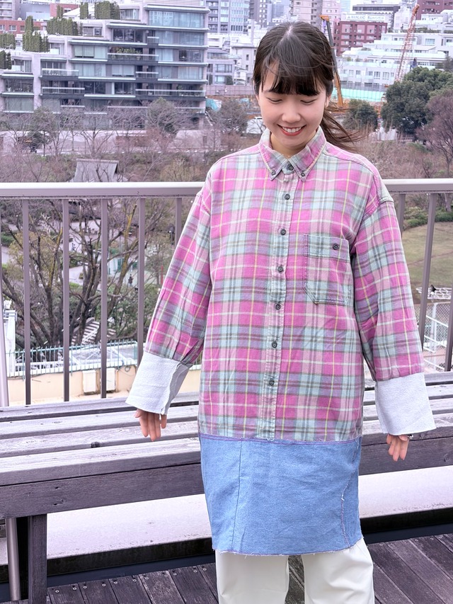 【古着・リユース】リメイク切替チェックシャツワンピース