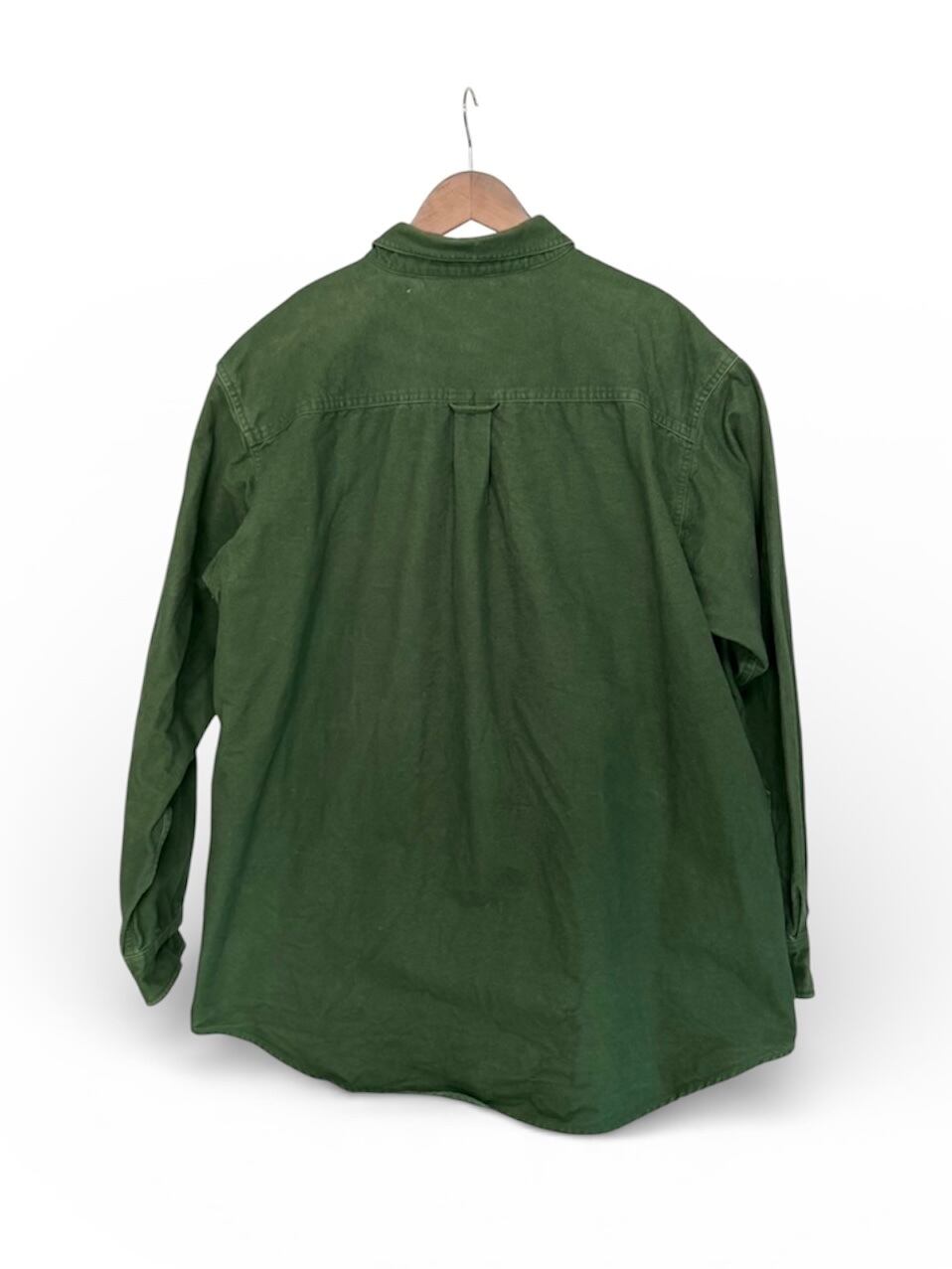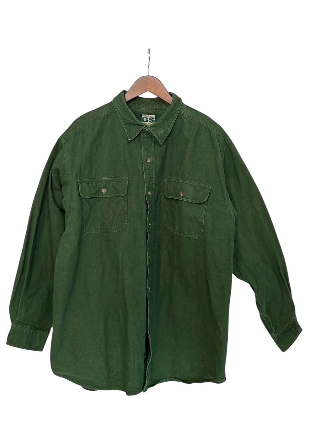 深みのあるグリーンカラーが印象的なワークシャツ。フロントのフラップ付きポケットが程よい無骨さを演出します。
