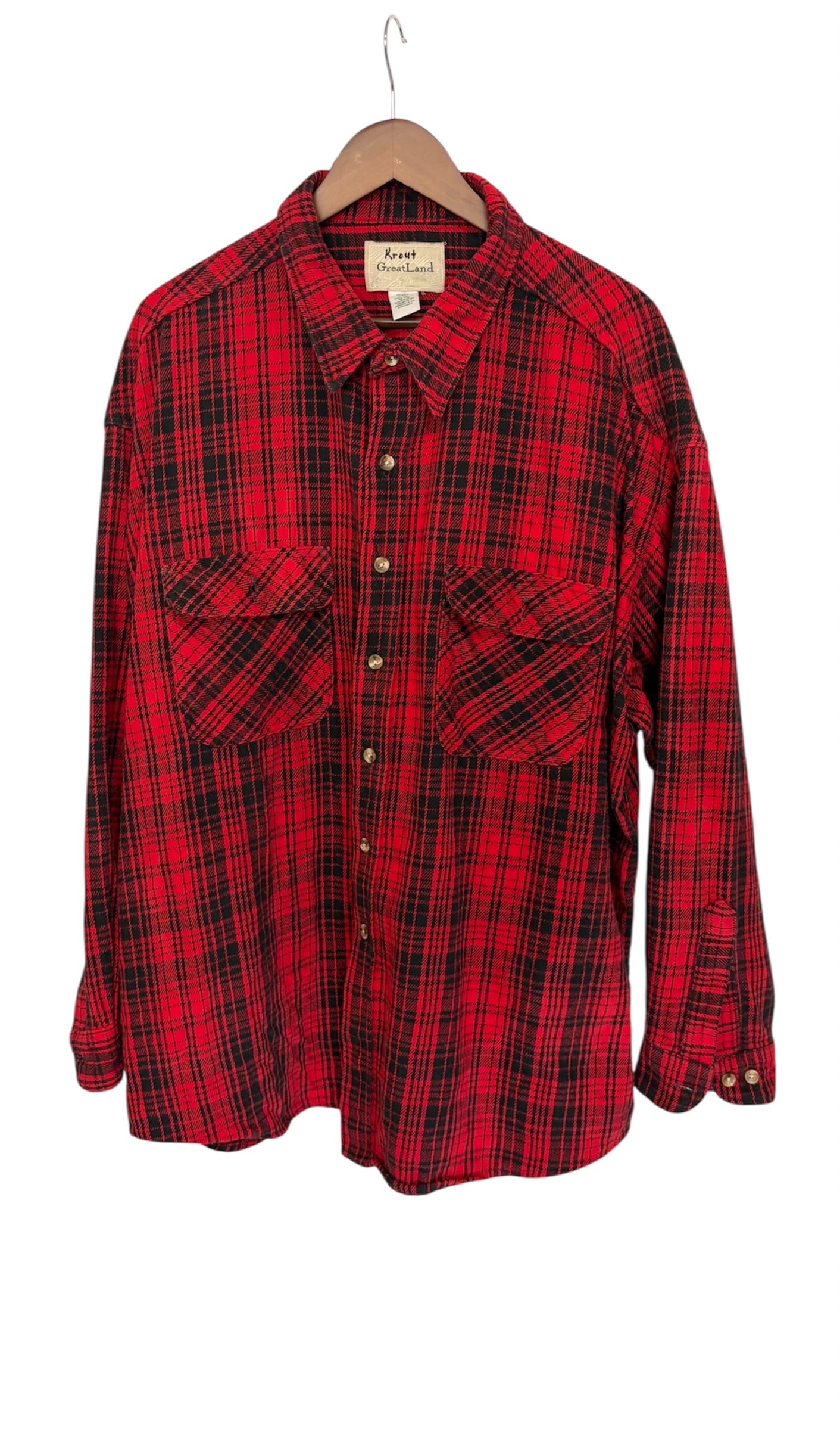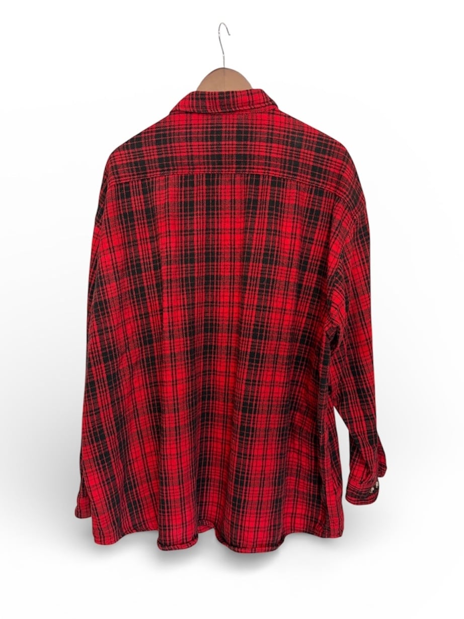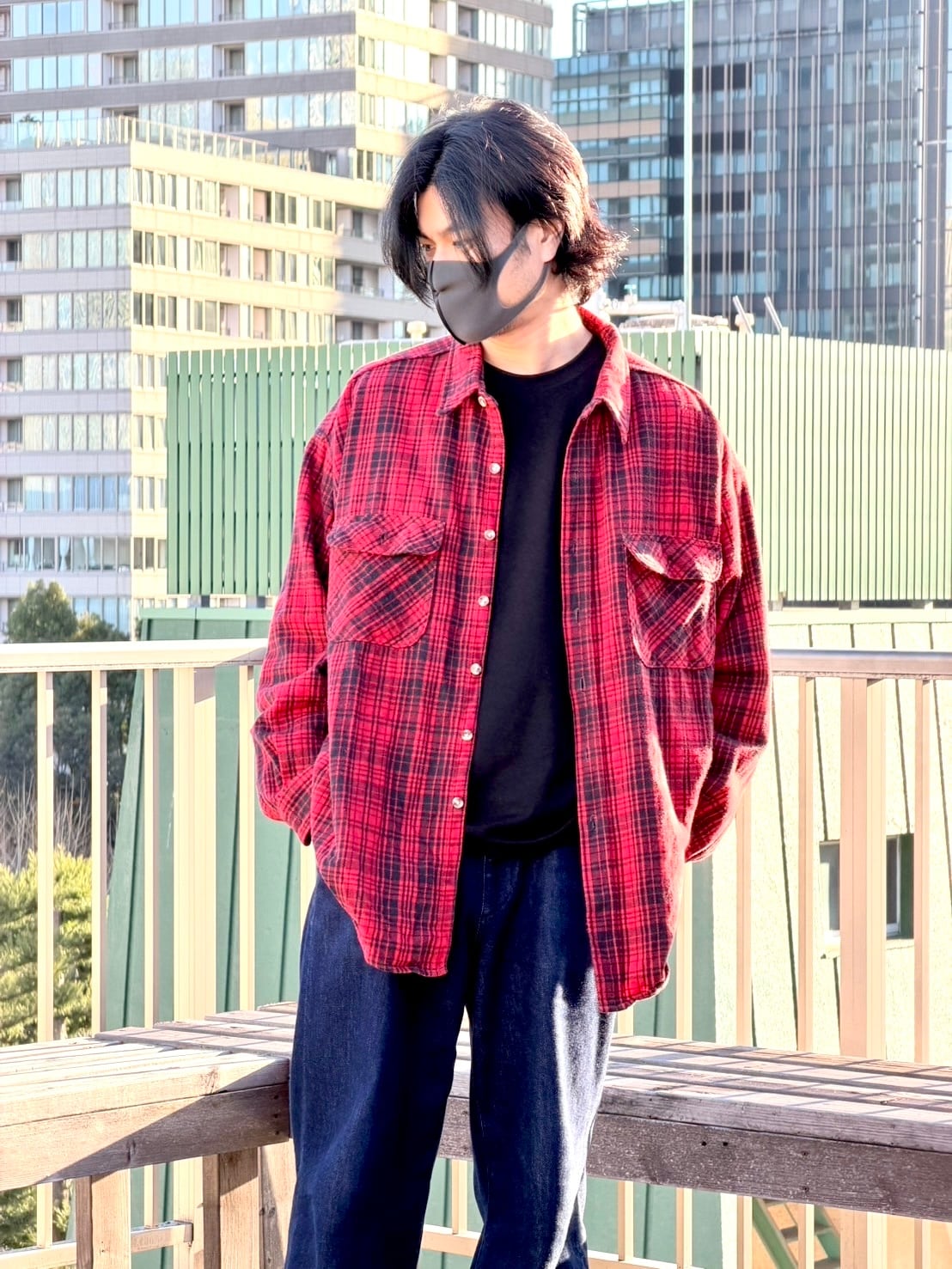 存在感のあるレッド×ブラックのチェック柄ネルシャツ。起毛感のある生地で、秋冬らしい温かみのある表情が魅力です。