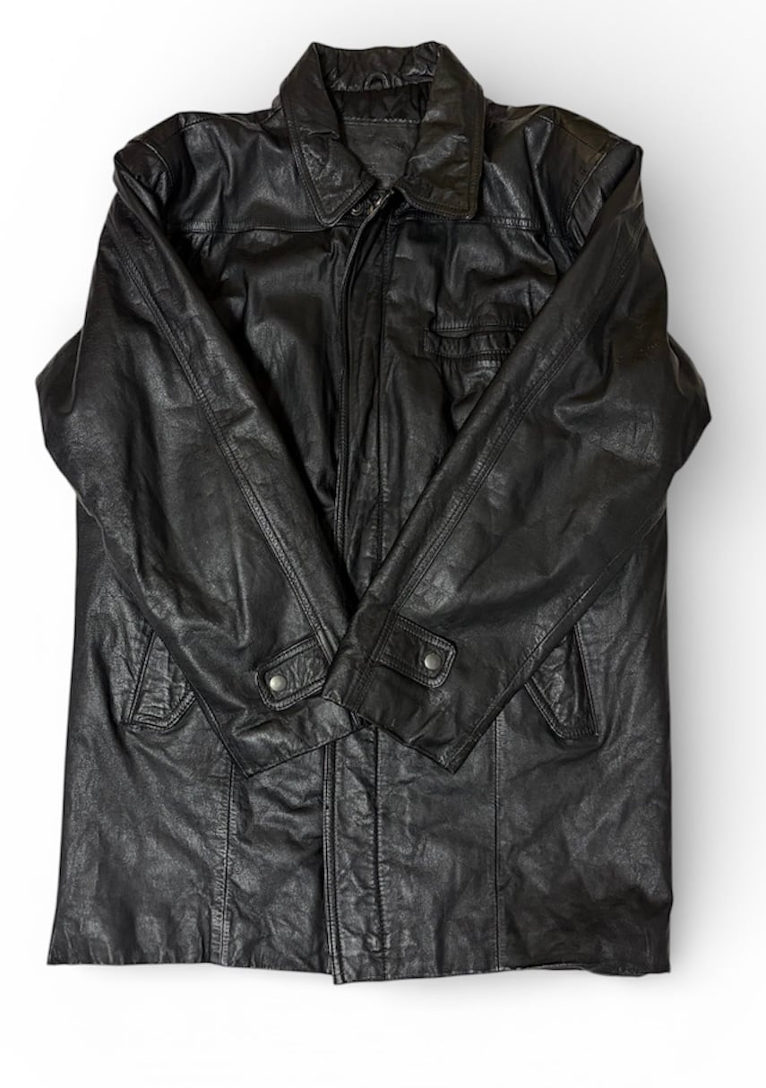 シンプルで無駄のないハーフコート型のレザージャケット。
