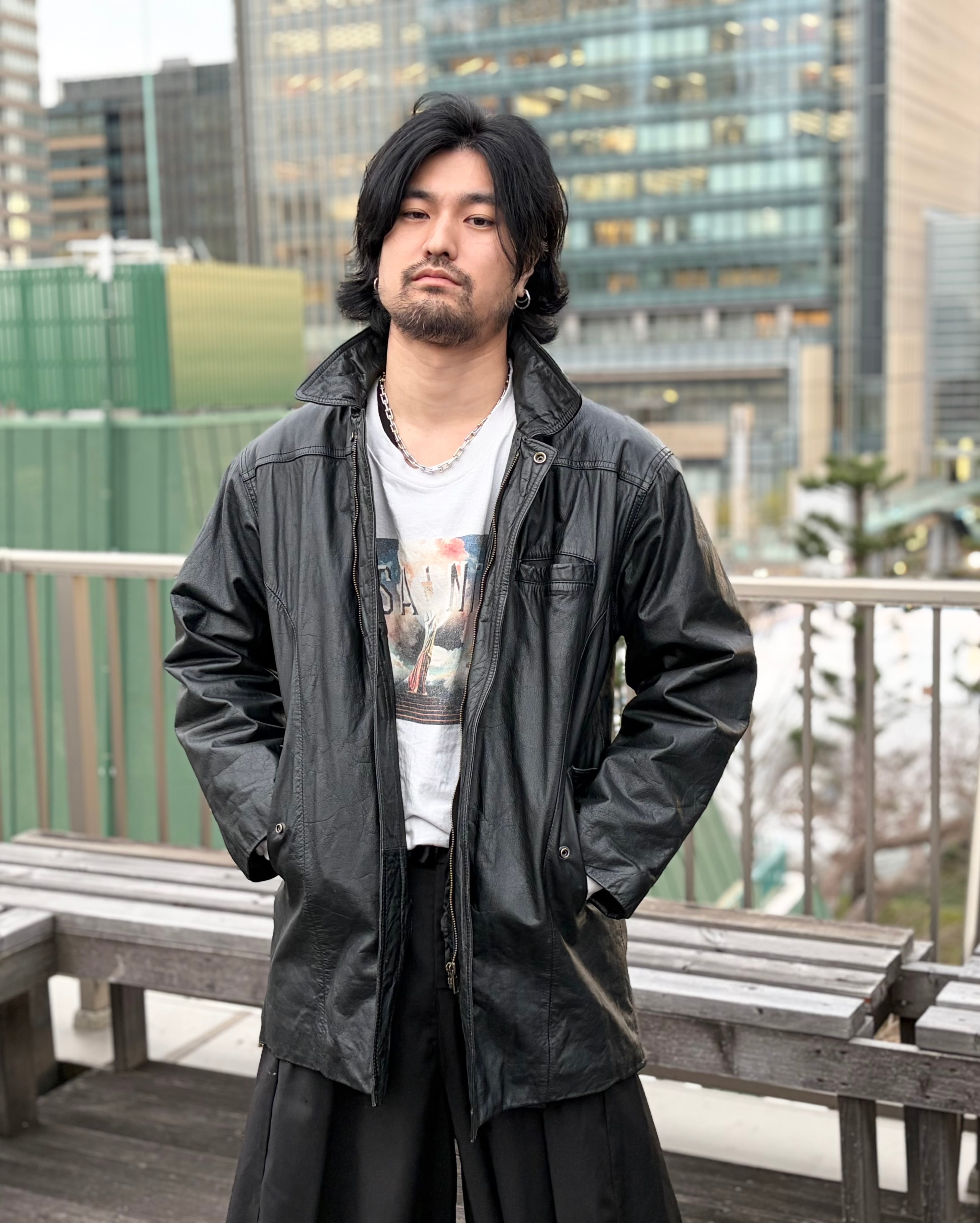 柔らかさのあるレザー素材で、レザー特有の重さや硬さを感じにくい一着です。