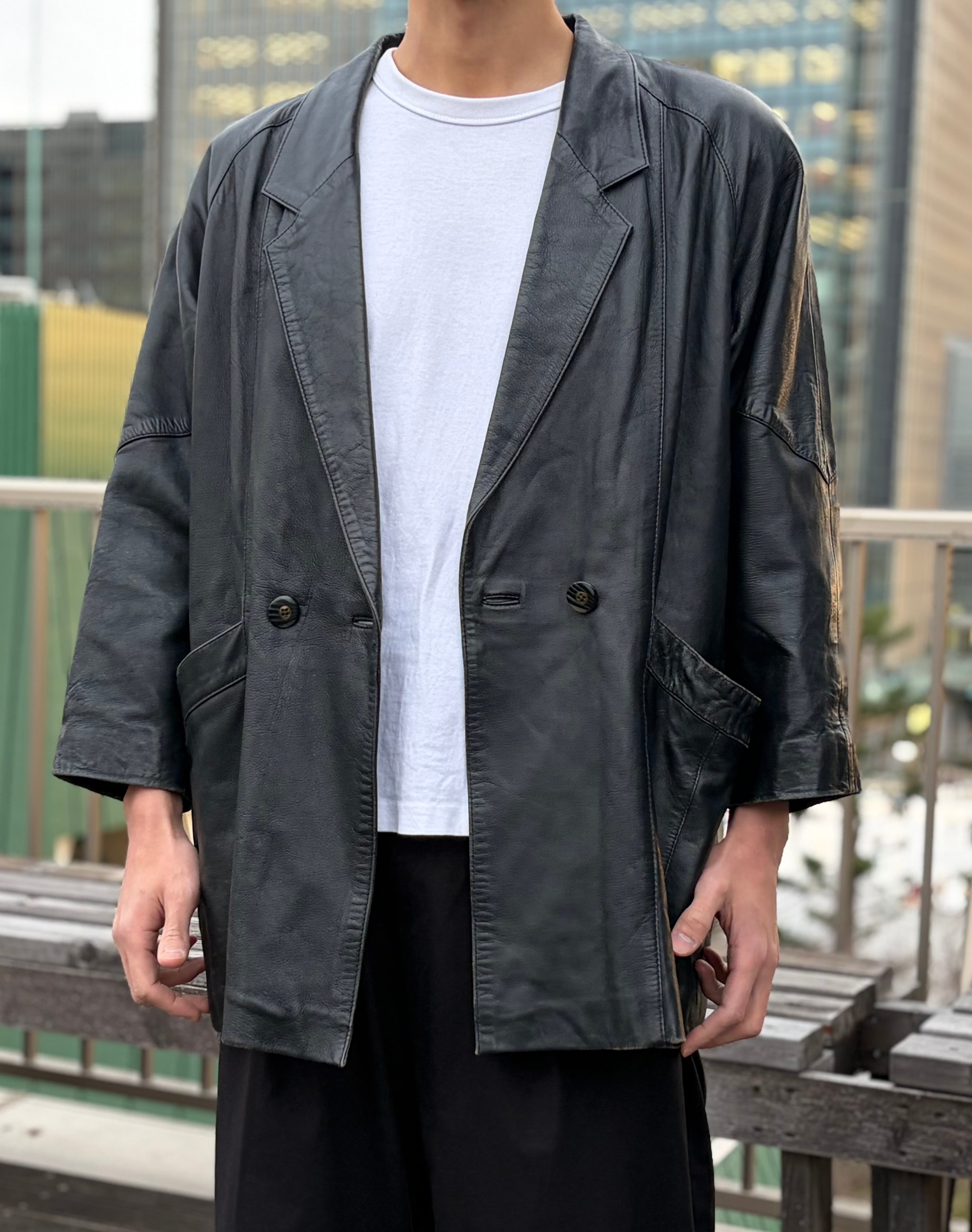 柔らかな羊革を使用した、ダブルブレスト仕様のレザーコート。