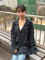 ゆったりサイズなので、前を閉じて1枚で着るとラフで可愛い雰囲気に。