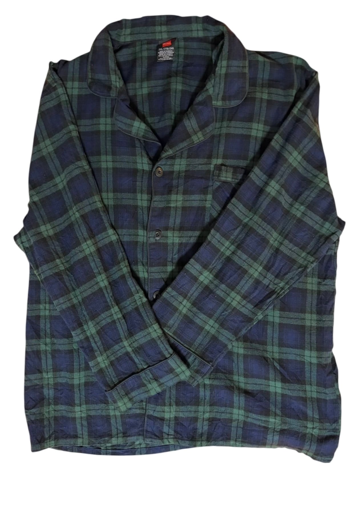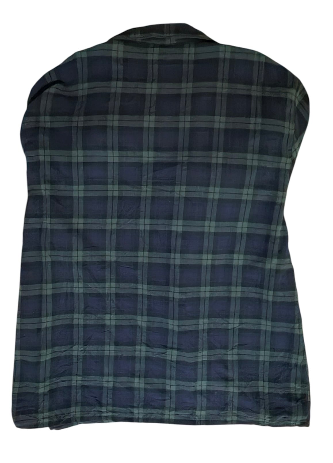 落ち着いたネイビー×グリーンのチェック柄で、古着らしい雰囲気のある一枚。